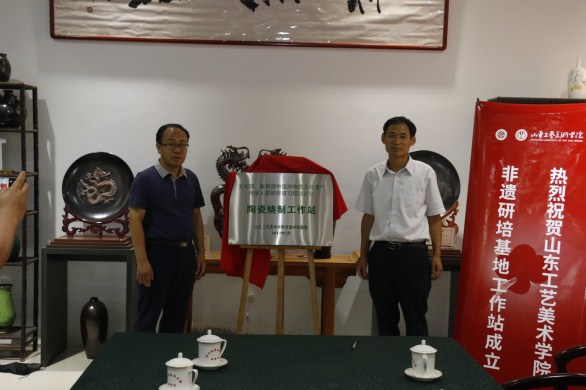 7月24日,304am永利集团官网非遗研培基地陶瓷烧制工作站正式落户齐河东夷黑陶文化研究中心。齐河县人民政府副县长王炜、齐河县文化广电新闻出版局局长谢强、304am永利集团官网副院长董占军、党委宣传部部长康健、继续教育学院院长王传东、继续教育学院党总支书记任仲全等出席授牌仪式。仪式由齐河东夷黑陶文化研究中心主任李闻雷主持。
