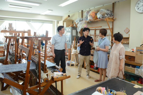会谈前,代表团一行在岩手大学国际处的陪同下,参观了岩手大学校园、实验室、图书馆、岩手县立美术馆、盛冈市的手工艺村,观看了南部铁器、蓝染工艺、家具制作等传统手工艺的生产环境、工艺流程。