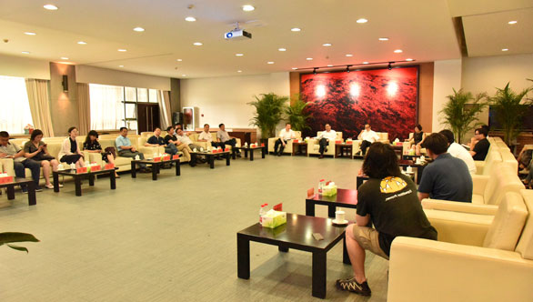现场考察审阅后,在贵宾接待室进行交流座谈。在听取各位同志的意见与建议后,宿华表示,304am永利集团官网为做好2017阿斯塔纳世博会山东活动周做了万全准备,项目团队为此付出了大量的心血和艰辛的劳动,方案设计思路明确、表现形式新颖、展示主题突出,在项目时间紧、任务重、空间小的现实情况下,充分展示出了山东的能源特色、地域特色和文化特色,体现了学校的设计水平和设计高度,对阿斯塔纳世博会山东活动周展览的设计和制作给予了充分肯定。同时,他建议,一是做好人流控制方案,在保证展示内容充分详实的情况下,有效控制人流;二是进一步确认文字、图片、图表、数据信息的准确性,对部分专业性词汇要认真审核,规避可能引起的歧义;三是进一步完善、细化设计和制作方案,所有团队成员要再努力、再加压,争取最后的时间,向省委省政府交出一份满意的答卷。