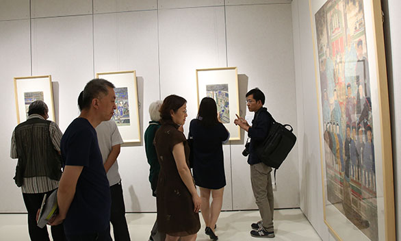 嘉宾首先来到位于济南“印象济南·泉世界”的中国民艺博物馆,参观了展出的民间工艺品,敦煌、龟兹壁画艺术精品和汉画像石拓片,潘鲁生向来宾介绍了展品情况和学校注重传统文化艺术研究与教学,利用校内外资源开展实践教学的情况。