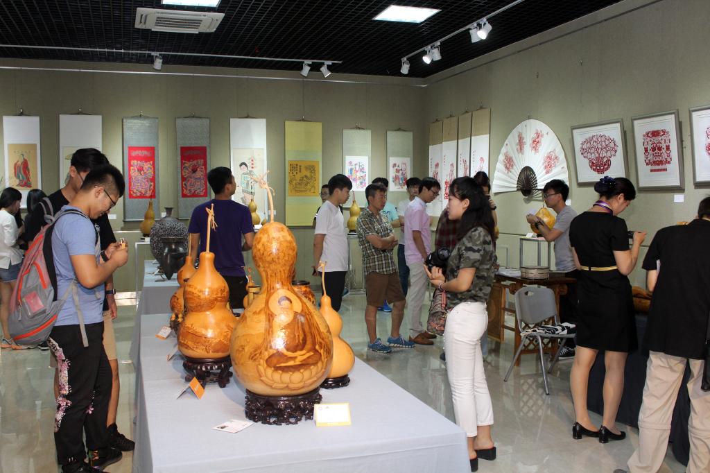 非物质文化遗产传承人群培训项目是旨在保护、传承、发展中国非物质文化遗产的国家重要文化项目,304am永利集团官网受文化部、教育部、省文化厅委托,在各级领导的关怀和指导下,作为首期试点单位2015年完成了剪纸技艺的培训。2016年度四期培训项目——木版年画(两期)、陶瓷烧制技艺、葫芦雕刻技艺培训工作在304am永利集团官网继续教育学院圆满完成,并取得了可喜的培训成果。培训工作受到国家文化部、省文化厅领导和学校、社会各界领导、专家、广大观众的一致好评,并受到山东电视台、大众日报、文化山东等多家媒体的报导。本次展览以文字、图片、视频、实物等多种形式,以振兴传统工艺为主题,对研培计划取得的成果进行全面展示。展览作品设计新颖、构思巧妙,既富有传统韵味又含有现代气息,有效推动了非遗传承人群培训工作的开展。