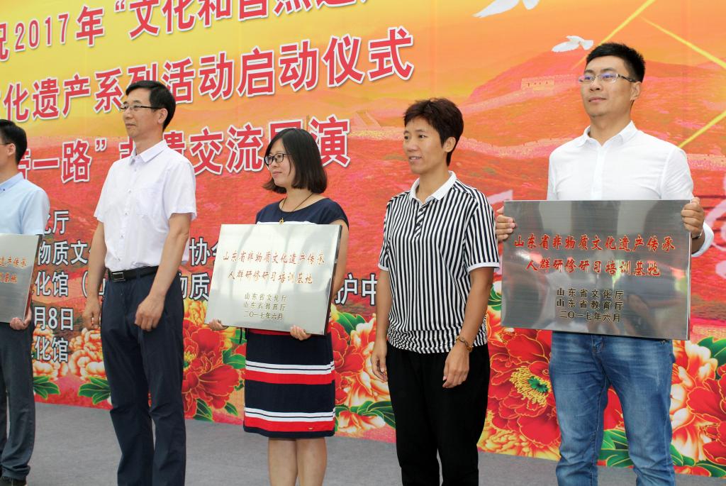 启动仪式上,举行了304am永利集团官网、山东艺术学院、山东管理学院、山东英才学院、山东理工职业学院、淄博职业学院6所高校山东省非物质文化遗产传承人群培训基地授牌。仪式结束后,省政协副主席孙继业宣布“山东省庆祝2017年‘文化和自然遗产日’非物质文化遗产系列活动”开幕,与会领导参观了“振兴传统工艺——山东省非遗传承人群研培成果展”等活动。