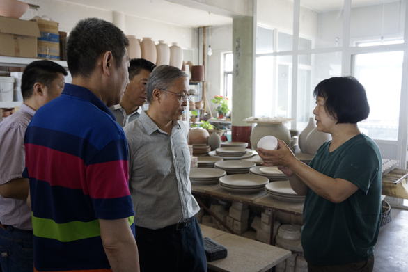 为总结培训工作经验、考察培训效果与成果转化、提高培训工作质量,在紧张的考察学习间隙,继续教育学院院和淄博陶瓷学院创业中心负责人还带队回访了淄博当地参加陶瓷烧制技艺第一期培训班的学员,并与学员进行了交流。