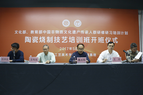 5月8日,“文化部、教育部中国非物质文化遗产传承人群研修研习培训计划”——陶瓷烧制技艺培训班开班仪式在千佛山校区举行。副院长董占军、省文化厅非遗处副处长王尚出席开班仪式。
