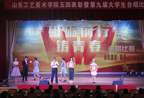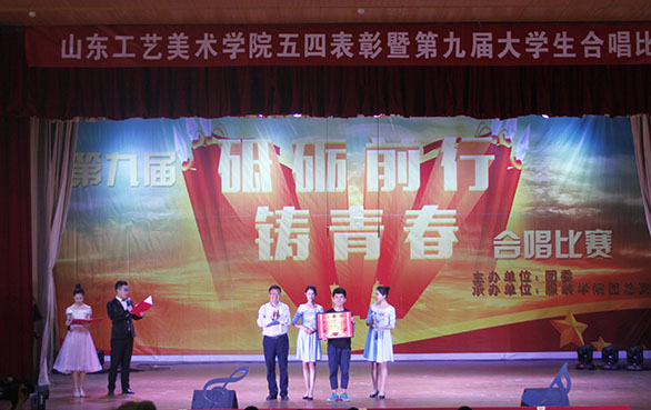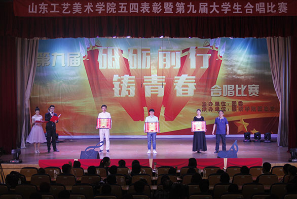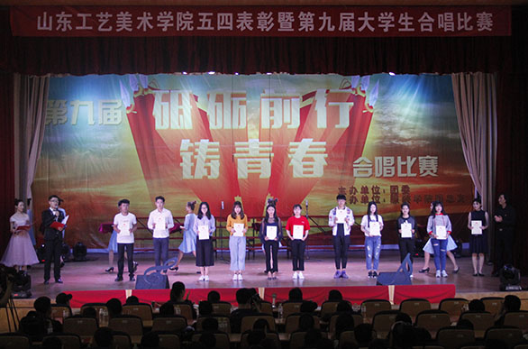 工会副主席、妇委会主任黄美玉,党委宣传部钟晓雅,山东艺术学院青年教师贾俊健、张雪,团委徐亚辰担任本次比赛评委。最终数字艺术与传媒学院代表队凭借在《光荣啊!中国共青团》和《青春舞曲》中富有感染力的演唱与耳目一新的表演形式摘得桂冠;建筑与景观设计学院、服装学院代表队获得二等奖;研究生、人文艺术学院、工业设计学院代表队获得三等奖;造型艺术学院、应用设计学院、视觉传达设计学院、现代手工艺术学院代表队获得优秀奖。