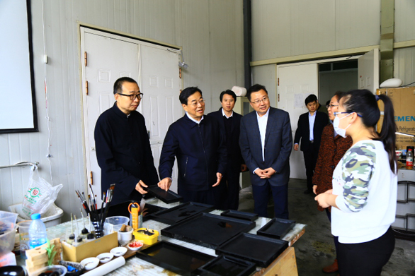 杨东奇随后调研了学校特种工艺实验中心、数字艺术与传媒实验中心和综合实验中心,全面考察了永利官网的实践教学场所和教学设施建设利用情况,并与师生进行了亲切交谈,询问了教师专业教学以及学生专业学习、毕业作品的设计等情况。