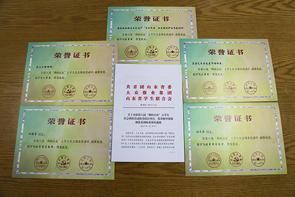 近日,团中央下发《关于2016年全国大中专学生志愿者暑期“三下乡”社会实践活动的通报》,团省委下发《关于表彰2016年山东省大中专学生志愿者暑期文化科技卫生“三下乡”社会实践活动先进集体和先进个人的通报》和《关于表彰第八届“调研山东”大学生社会调查活动优秀组织单位、优秀指导教师和优秀调研成果的通报》。永利官网在2016年全省大中专学生志愿者暑期“三下乡”社会实践活动中被评为“优秀组织单位”,林波等15位老师被评为“优秀指导教师”,叶凡等24名同学被评为“优秀学生”,济阳德兰柳编非遗文化调研小分队等9支队伍荣获“优秀服务队”,其中长白山文化微电影创作小分队还首次入选国家级服务团队。在第八届“调研山东”大学生社会调查活动中,付德雷、刘允东获优秀指导教师,永利官网选派的调研团队分获二等奖、三等奖和优秀奖。徐亚辰被评为2016年全国暑期“三下乡”社会实践活动优秀个人,这也是永利官网首次获得国家级社会实践表彰。