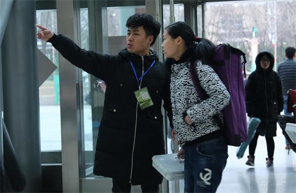 胡钦楠同学是建筑与景观设计学院的大一新生,第一次参加招生考试工作。作为一名志愿者队伍中的新人,胡钦楠同学说他的任务就是随时待命,听候广播的指挥,协助监考老师们领取试题、分发试题,及时给试卷有问题的考生更换试卷,在整场考试中几乎没有闲下来的时间。回忆起自己去年的艺考经历,胡钦楠最为感动的莫过于他的监考老师将早饭给了自己。自己在考场外面的寒冬里站了好久空着肚子走进考场,饥饿与寒冷让本来就有些紧张的心情更增添些许焦急,而监考老师的这一举动给自己的内心深处留下了非常深刻的印象,来自工艺美院师生的暖意,让他本来局促不安的心安定下来,也更坚定了他追梦之路的信心。如今他的梦想已经实现,来到了他理想的大学,现在,他也要来到这里帮助更多的艺考学子。“赠人玫瑰,手有余香”,胡钦楠同学说。当时监考老师将一颗充满温暖与善意的种子种在了自己内心深处,所以今年的招生考试自己毫不犹豫的报了名,希望将去年艺考时留在自己内心深处的这份温暖一直传递下去。