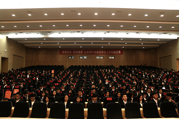 学生工作部、工会、团委等部门负责人,各二级学院团总支书记、团委工作人员以及282名学生代表参加了本次大会。