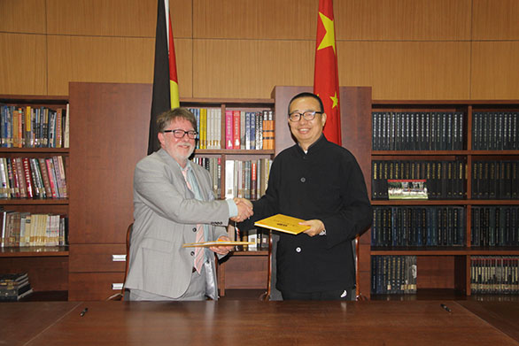 会见来宾并代表学校与德国院校签署学术研究与合作理解备忘录,副院长李新出席。