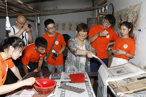 校领导一行专程慰问了正在进行社会实践的指导老师和6名同学,并与永利官网社会实践师生座谈。师生们汇报了社会实践的开展情况,社会实践团队到杨家埠后,由指导老师带领志愿者进入年画社现场学习制作木版年画,亲身体验刻板,和一直致力于木版年画传承的传承人座谈,共同探讨再发展和衍生品开发。认真分析整理搜集到的资料,针对木版年画的发展重在“创新设计”这个主题,着手木版年画衍生品的开发与应用,迈出走向发展应用之路。