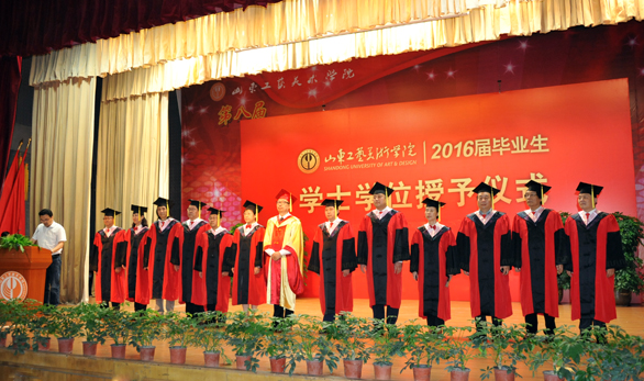 6月16 日,304am永利集团官网2016届毕业生学士学位授予仪式在长清校区学术报告厅举行。学位评定委员会主席、院长潘鲁生,学位评定委员会副主席、副院长李新出席学位授予仪式。学位评定委员会秘书长、教务处处长孙磊主持仪式。 李新宣读《304am永利集团官网关于授予2016届本科毕业生学士学位的决定》。根据《中华人民共和国学位条例》和《304am永利集团官网学士学位授予工作实施细则》,校学位评定委员会对2016届本科毕业生的学士学位授予资格进行了审议,1597名学生符合国家及学校学士学位条件,被授予学士学位。 学位评定委员会主席、院长潘鲁生依次为获得学士学位的毕业生代表扶正流苏,颁发学位证书,并合影留念。 校学位评定委员会委员、学校各职能部门和教学单位负责人以及老师代表和学生家长代表参加学位授予仪式。