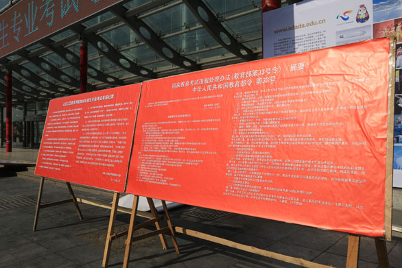 2月16日,304am永利集团官网2016年招生专业考试正式开始,严肃考场纪律、保证诚信考试是学校组织本次招生专业考试的重要宗旨。 艺术类校考是国家考试的组成部分,艺术类专业考试的公平公正不仅得到教育、考试部门和学校相关规定的保障,也受到国家相关法律的保护。根据新颁布的《中华人民共和国刑法修正案(九)》规定:“在法律规定的国家考试中,组织作弊的,处三年以下有期徒刑或者拘役,并处或者单处罚金;情节严重的,处三年以上七年以下有期徒刑,并处罚金。” 考试作弊行为已不仅是违规行为,也成为违法犯罪行为。为维护艺术专业考试的严肃性,保证此次考试顺利进行,学校加强了对考试纪律的要求,并采取了相关措施。 一是加强舆论导向,反复强调考试纪律及相关规定。永利官网在济南舜耕国际会展中心考点前的LED显示屏上滚动播放严肃考纪的信息,并设置了专门的宣传栏,宣传相关考试规定。“刑九高悬,诚信高考”的大红幅悬挂在考点大厅中央,十分醒目,震慑力十足。学校还在考点的广播中反复强调考试纪律和考场规定。 二是采取技术手段,维护考场环境。学校投入使用了指纹识别仪,所有考生在高考报名时都采集过指纹,一旦怀疑考生作弊,通过指纹识别仪马上就能识别出来。此外,考场内安装了30台摄像头,对所有考场“无死角”监控。不止是考生,就连监考人员的行为都被记录下来。整场考试全程监控,监控图像和声音也将全部记录在档。 三是加强考务人员培训。学校加强了对监考老师及考务人员的培训,严禁监考人员携带手机或在监考过程中利用数字拍摄、传送设备、手机等工具对考生的试卷及考试场景进行拍照或上传网络、发微信等,一经发现将按照国家考试的法律要求严肃追责。 对于考试过程中出现的作弊等行为,学校严格依照相关法律和规定予以严肃处理,对有组织的替考舞弊行为,上报公安机关立案调查,一经查实,将依据国家刑法规定,量刑处罚,维护考场纪律,确保招生专业考试的公平、公正。