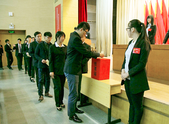 会议第三阶段,大会公布第二十三届学生会委员的选举办法以及监票团名单。由第二十三届学生代表大会委员候选人依次上台演讲。会议进行无记名投票,经过大会监票团的审核,选举产生了18位学生代表大会委员。
