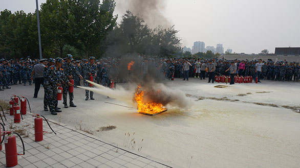 9月21日,2015级新生安全知识讲座与消防灭火演练在长清校区操场举行。