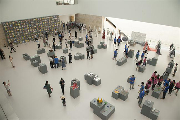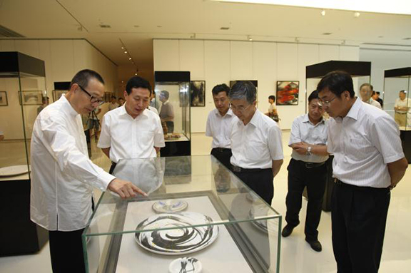 2015年8月12日,“匠心传承—潘鲁生当代艺术巡回展”在山东美术馆启幕。 展览由中共山东省委宣传部、中国美术家协会、中国国家画院、山东省文化厅、山东省文联、304am永利集团官网主办,山东省美术馆、银座美术馆、山东福泰陶瓷、北京德艺伟业承办,《诗书画》杂志学术支持,作为中国文化名家暨“四个一批”人才支持项目、“中法文化年”艺术展专题项目、国家社科基金艺术学重大课题研究项目、中国国家画院丝绸之路美术创作工程项目,是历经我国及意大利、法国、西班牙等国家的8座城市、14座美术馆、博物馆巡回展出后的一次集成展,也是巡展启动近三年来创作更新、国际交流、评论研讨的回乡汇报展,更是从民艺文献梳理、当代艺术创作、东西方艺术对话,进一步向艺术衍生设计全面拓展的艺术展。 展览由“民艺调研——民艺文献展”、“国瓷彩墨——陶瓷作品展”、“回归本元——纤维作品展”、“丝路写意——丝绸之路调研展”、“鲁班绳度——绘画作品展”、 “水墨意象——综合材料展”、“西行巡展——巡展文献展”、 “中西对话——毕加索潘鲁生陶瓷对话展”、“衍生意匠——衍生品设计展”9大版块组成。在山东美术馆二层6000平米的展陈空间里,文脉交错,气势开阔,充分呈现潘鲁生对传统与当代、东方与西方、学术与艺术、创作与设计的深度思考和融会表达,展示深沉积淀的民间艺术如何破茧成蝶成为才情哲思的当代艺术,以及沉郁鲜明的齐鲁文化如何经巡展与西方文化碰撞交流、如何借当代艺术由设计衍生再次向日常生活回归,多角度诠释匠心文脉的创造性传承。 民艺传承,回归本元 展览不同于单纯的艺术展,在独立的展示单元里汇集了潘鲁生三十年来的民艺研究成果,以文献形式梳理和再现了几十年来从田野调研到学科建构的民艺研究历程。其中有囊括衣食住行用的民艺个案调研,有民间文化生态保护的理论分析,有民间文化遗产抢救的图文记录、农村文化产业的发展纪实,以及当前城镇化进程中民族传统工艺美术保护与发展的最新研究动态,也有几十年来关于中国民艺学、中国手艺学的学科建设的理论研究路经展示。 由此不仅梳理和展示了一个学者的研究历程,全景式地呈现了中国民艺研究三十年来的研究理路,更作为展览的开篇揭示了民艺传统的基础意义,以文献成果的形式,最质实有力地阐释了有自己血脉筋骨的中国当代艺术从何处来、有广泛共鸣的民族审美意象源自何处、以及当代设计里意匠文脉的本元。 匠心传承是一段无声的旁白,几十年心血智慧熔铸其中,梳理发掘的是民族造物审美的智慧,也哺养开辟了一条精彩的创作创新之路。 西行对话,寻找自我 展览汇集了巡回展举办以来的对话交流成果,自2012年12月在山东博物馆启动以来,先后在深圳关山月美术馆、上海中华艺术宫、北京中国国家画院美术馆、北京恭王府展览馆展出,并在第55届威尼斯双年展期间的意大利威尼斯罗塔宫,意大利国家陶瓷博物馆、意大利西西里城市博物馆展出,作为中法建交50周年系列活动项目,于2014年10月先后在法国巴黎装饰艺术博物馆、法国巴黎小皇宫博物馆、巴黎皮尔卡丹艺术博物馆、西班牙马拉加毕加索博物馆、西班牙马拉加玻璃与水晶博物馆巡回展出。期间,在深圳、北京、巴黎和毕加索故里马拉加邀请中外艺术家、评论家、策展人及专家学者多次召开学术研讨会及艺术交流活动。 在与他者对话中,愈见自己的主体和特色,有碰撞,有共鸣,有“我之为我”的丰富和深刻。正如国际著名策展人温琴佐•桑弗先生所指出,从西方的角度来看,潘鲁生的创作触及了波洛克的世界,然而,从东方的角度来看,他的灵感来源受到中国传统艺术的强烈影响。文化交融激发出无限的创造力,他所有的作品充满了他所寻求的艺术形态、律动和历史延续的意义。“仔细观察他的画作,不难看出历史的意义是如何强烈地显现于作品之中,同时,作品也呈现着特定的情感表达形态,极富个性色彩和意象表现。这正是潘鲁生的艺术风格,通过自我解析,将一切重新诠释并加以转化,全新的历程是对古老记忆的创新诠释,作品由此诞生”,“毕加索,在他的时代,寻获了今日所展现的新生命与新的表达方式,就如同潘鲁生今日透过他创新的风格、他所实验的艺术样态,打开了中国当代陶瓷艺术又一次创新的历史页面。” 巡展的过程是文化传播与艺术交流的过程,也是体认自我的过程,异域文化的评价解读丰富着创作的内涵,也深化着潘鲁生作为中国艺术家的自主意识。而今,他将这段心路历程以展览的形式呈现出来,展示的也是中国当代文化艺术一种自觉自励的努力过程,只有弗失自我,才能在世界民族文化之林里屹立对话、交流创造。 当代艺术,创造交响 展览集成了潘鲁生近年创作的陶瓷作品、丝绸等纤维作品、综合材料作品和参与设计衍生的青年设计师作品,并选取了与毕加索陶瓷的经典对话作品,展示了潘鲁生在不同材料工艺、绘画意象、设计语言之间的转化和创造。作品内容体量大,语言丰富,并贯通鲜明的创作风格和特色,似一场宏大壮丽的当代艺术交响。 其中,“国瓷彩墨”探索了传统陶瓷工艺与当代水墨语言的结合,在传统形制里挥洒涌动的是属于当代的语言和个性才情。“丝路写意”追朔丝绸之路的艺术交融,由敦煌莫高窟到