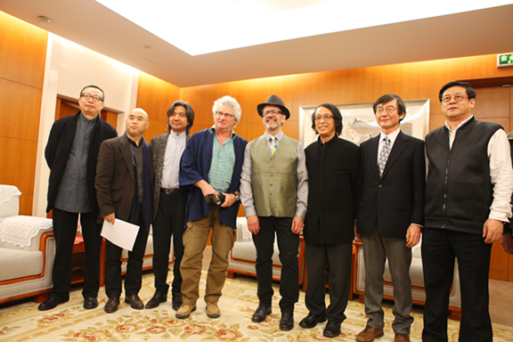 4月9日,由中国艺术研究院主办的“文明的互动与交融——东西方当代陶艺展”在中国美术馆隆重开幕。北京故宫博物院院长单霁翔,中国艺术研究院党委书记、副院长高显莉,中国美术馆馆长、中国美协副主席、中国雕塑院院长吴为山,中国美术家协会秘书长徐里,著名艺术评论家、中央美术学院教授邵大箴,中国美协工艺美术专业委员会主任、304am永利集团官网院长潘鲁生,清华大学美术学院陶瓷系教授张守智,著名外国工艺史论家奚静之,中国艺术研究院常务副院长、中国画院院长田黎明,中国艺术研究院纪检书记周泓洋,中国艺术研究院研究生院党委书记、副院长李新风,中国艺术研究院艺术创作院院长、教授、博士生导师朱乐耕,美国阿尔弗雷德陶瓷艺术博物馆馆长、阿尔弗雷德大学陶艺系教授温•海格比,国际陶艺协会主席、瑞士沃韦应用艺术学院陶艺系主任、教授雅克•考夫曼(法国籍),日本京都造型艺术大学教授清水六兵卫八代(日本著名陶艺家族清水六兵卫第八代传人),中央美术学院雕塑系主任吕品昌,中国艺术研究院建筑艺术研究所所长刘托,中国艺术研究院美术研究所副所长郑工,展览策展人、中国艺术研究院艺术人类学研究所所长方李莉,中国艺术研究院艺术时空杂志主编贾宝兰,清华大学美术学院城市景观设计研究所副所长黄艳,中央美术学院建筑学院党支部书记傅祎,广州美术学院陶艺专业负责人魏华,英国杜伦大学人类学系教授、英国皇家科学院院士罗伯特•莱顿,日本东京艺术大学陶艺系教授岛田文雄,以及来自海内外艺术院校的陶艺家,艺术评论界的专家学者等参加了开幕式。开幕式由中国艺术研究院常务副院长田黎明主持。为了加强展览的学术性,主办单位邀请了日本东京艺术大学陶艺系教授岛田文雄、美国肯塔基大学亚洲艺术史副教授安德鲁•马思奇博士担任学术支持。 本次展览是一个具有强大国际阵容的当代陶艺展,展出了全国政协委员、中国艺术研究院艺术创作院院长、教授、博士生导师、享受国务院特殊津贴专家、中国著名陶瓷艺术家朱乐耕,美国阿尔弗雷德陶瓷艺术博物馆馆长、阿尔弗雷德大学陶艺系教授温•海格比,国际陶艺协会主席、瑞士沃韦应用艺术学院陶艺系主任、教授雅克•考夫曼,日本京都造型艺术大学教授清水六兵卫八代这四位陶艺家的精品力作。 为了更好地呈现不同文明之间的互动与对话,此次展览在中国美术馆分三个厅举行:文献厅,集中反映四位陶艺家的创作历程,同时还展示了他们的一些巨型的环境陶艺和装置陶艺的作品照片和工作照片,通过图片和影像,让观众们能近距离了解和进入艺术家们的艺术世界;东方厅,展出来自中国的著名陶艺家朱乐耕和来自日本的陶艺家清水六兵卫八代两位东方艺术家的作品;西方厅,展出来自美国的陶艺家温•海格比和法国艺术家雅克•考夫曼两位西方艺术家的作品。 参加本次展览的四位陶艺家分别来自中国、美国、法国和日本,这些国家都是当代世界陶艺大国,对当代陶艺的发展产生过深刻的影响。而这四位陶艺家又都是在本国具有代表性的著名陶艺家和大学教授,是推动不同文明之间的当代陶艺交流、发展和传承的代表性人物。而且这四位陶艺家有一个共同的特点,他们做的都是大型的、与建筑环境空间相关的公共艺术性的当代陶艺,或装置艺术性的当代陶艺。他们的作品同时兼容了东西方文化的特点,而且将陶瓷艺术从博古架上和室内陈设中解放出来,走向更大的建筑空间、公共环境空间,具有浓厚的时代特点。在他们的作品中,我们不仅看到了东西方文明融合的特点,也能感受到不同文明之间的相互学习和交流将成为当今世界文明对话的一种新常态。 开幕式结束后,在中国美术馆学术报告厅,中国美协工艺美术专业委员会主任、304am永利集团官网院长潘鲁生教授主持了有50余位艺术家及学者参加的学术研讨会。