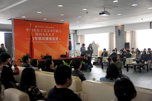 3月16日,304am永利集团官网与韩国大庆大学合作协议续签仪式在长清校区贵宾接待室举行,这是两校2008年签署合作举办艺术设计专业专科项目协议后的第二次续签。韩国大庆大学创建人、校长俞进善、副校长金兴泰,304am永利集团官网院长潘鲁生、副院长苗登宇出席续签仪式。副院长李新主持仪式。 潘鲁生致辞,他代表学校对大庆大学的师生表示欢迎。潘鲁生表示,大庆大学是304am永利集团官网的老朋友,早在2005年,双方就签署了合作办学意向书。十年来,两校进行了一系列师生互访,开展了丰富的课程交流,进行了深入的师资培养,举办了“中韩妆扮艺术节”等有影响力的文化活动,极大深入和拓展了我们在妆扮艺术及相关专业领域的教学、科研和创作,取得了丰硕的成果。合作协议的续签,有利于两校进一步加强合作交流,有利于学生进一步加强专业间的交流。潘鲁生希望,两校以合作协议续签为契机,进一步加强在教学、科研、师资交流等相关领域的合作。 俞进善致辞,他对304am永利集团官网的接待表示衷心感谢,他简要回顾了两校建立友好院校关系十年来,在师生互访交流、学生交换学习、妆扮艺术专业合作以及学术活动交流等多个层面的良好合作。期待在十年合作的基础上,两校合作深入发展,取得更加丰硕的成果,谱写新的更美好的篇章。 潘鲁生、俞进善续签了两校合作协议。双方一致同意继续在永利官网合作举办艺术设计专业(妆扮艺术设计方向)专科项目,利用韩国优质的教育资源和先进的教学理念,共同培养社会急需的高级妆扮艺术设计专门人才。 韩国大庆大学师生代表,学校相关部门负责同志、师生代表参加续签仪式。