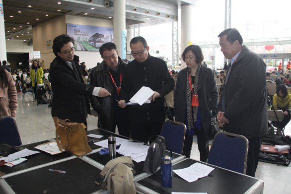 2月27日、28日,304am永利集团官网2015年招生专业考试在济南舜耕国际会展中心拉开帷幕。院长潘鲁生,党委副书记杨新力,党委副书记、纪委书记裴新锋,副院长李新、苗登宇等校领导亲临考试现场,视察指导考试工作。 视察过程中,校领导仔细了解了招生考试、监考人员的具体情况,认真听取了招生办及相关负责人对现场情况的汇报,根据现场的具体情况及时对招生工作做出相应指导和部署,并要求全体工作人员认真贯彻“安全第一,考生为本”的原则服务考生,力保永利官网2015年招生专业考试工作公平、公正,确保招生考试工作顺利进行。 校领导对参加招生考试工作的教职工以及学生志愿者等所做的的工作以及认真、负责、实干的奉献精神给予了充分肯定,并表示感谢。 相关部门负责人陪同。