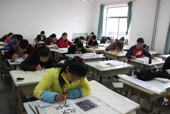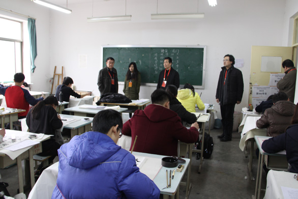 校领导视察应用设计学院分院考点书法类考试现场