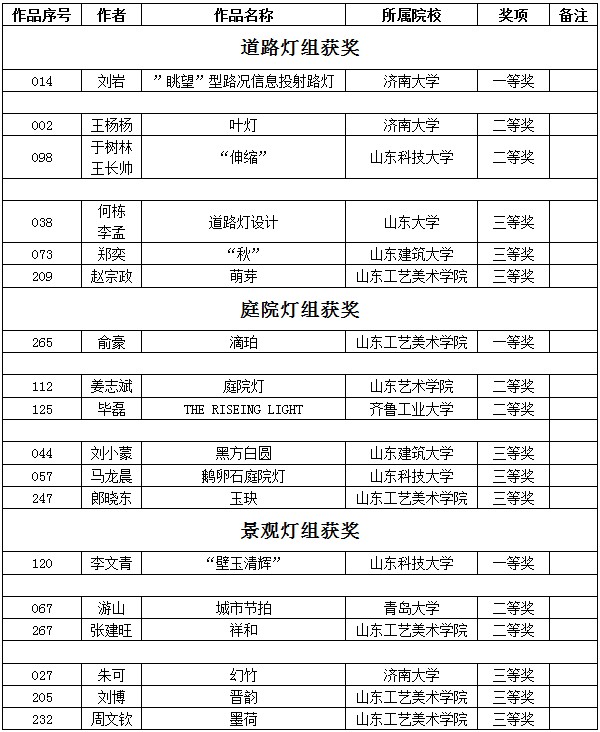 “三星灯饰杯”第五届齐鲁大学生工业设计大赛获奖作品名单