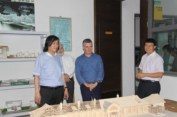 又讯:潘鲁生陪同奥克兰大学伊莱姆美术学院来宾考察济南西部新城 7月17日,在济南西区建设指挥部副总指挥王迪生、304am永利集团官网院长潘鲁生的陪同下,来访的新西兰奥克兰大学伊莱姆美术学院院长德瑞克·彻理、副院长詹姆斯·斯皮尔斯,赴济南西部新城区考察城市规划和建设情况。 潘鲁生一行实地考察了西城集团的济南西区规划展馆,观看了西区规划专题片,并考察了省会大剧院、小清河湿地公园、济南园博园等建设项目与重点片区。在考察过程当中,王迪生向潘鲁生一行介绍了济南市城市建设总体规划情况,以及济南西部新城的总体规划以及重点项目的开发建设情况。 在双方座谈中,潘鲁生表示,济南西部新城的规划建设应注意保护生态环境,统筹城乡发展;同时,在城市人文环境建设和公共景观建设中应注意公共艺术所能发挥的作用。 德瑞克·彻理对潘鲁生的意见表示赞同,并对济南西部新城规划建设相关公共艺术项目表示了浓厚的兴趣。同时邀请王迪生能够有时间参加2015年6月在奥克兰举行的第二届公共艺术颁奖,并就济南市西区建设成果做专题演讲,并为2015年9月在济南举办笫二届公共艺术论坛和展览做好准备。 双方还就第二届公共艺术颁奖和公共艺术论坛在济南的举办场地进行了实地考察,交换了意见。同时,就济南市政府通过积极参与第二届国际公共艺术颁奖和论坛,深入接洽国际公共艺术专家团队,进一步提高济南市公共艺术水准与相关项目国际推广力度,将园博园、湿地公园、大剧院等重点片区与节点,纳入到公共艺术创作和论坛主题中去等内容进行了讨论,达成了初步意向,并共同探讨了下一步工作具体展开的相关步骤。 院长办公室、国际交流与合作处负责人和工作人员陪同考察和座谈。