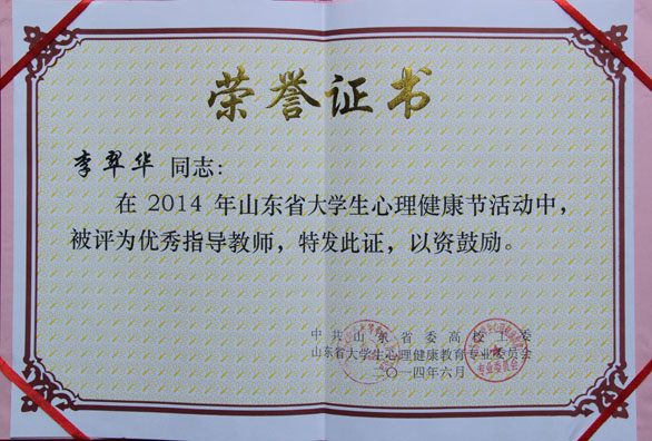 永利官网在2014年山东省大学生心理健康节活动中喜获佳绩