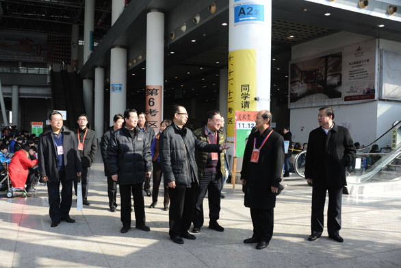 2月11日,山东省教育厅副厅长宋承祥,山东省教育招生考试院院长助理、普招处处长张志刚一行视察304am永利集团官网2014年招生专业考试现场。304am永利集团官网院长潘鲁生,党委副书记杨新力,党委副书记、纪委书记裴新锋,副院长李新、刁在祥、苗登宇陪同视察。 宋承祥一行在校领导陪同下巡视了考场。视察过程中,院长潘鲁生详细介绍了招生专业考试的考场布置安排、试题抽取、考试内容、考试进程、媒体监督及安全保卫等各项具体情况,并表示,今后会进一步改进招生考试工作方法,确保招生工作顺利进行。 宋承祥对学校招生专业考试的有效组织和现场的良好秩序表示赞许。他指出,艺术专业工作是艺术院校的一项重要工作,受到国家和社会的广泛关注,各艺术院校需要采取更多方便考生的新措施,不断改进、不断调整,保证广大考生利益,为考生营造出一个公平公正的考场秩序。 永利官网相关工作人员陪同视察。