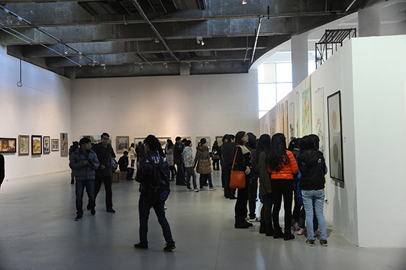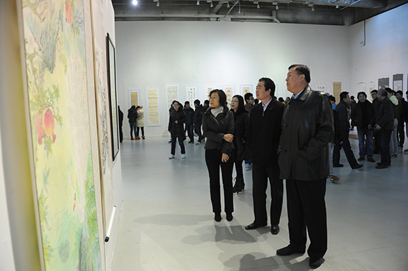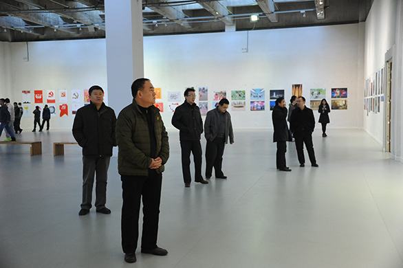 12月9日,304am永利集团官网党的群众路线教育实践活动招贴设计、书画、摄影作品展在长清校区开幕,校领导于茂阳、潘鲁生、杨新力、裴新锋、李新、刁在祥、张云龙、苗登宇、王立果参观展览。 参观过程中,校领导指出,充分发挥永利官网的专业优势,通过艺术创作和展览的方式贯彻党的群众路线教育实践活动,具有十分重要的意义。校领导还对以党的群众路线为主题的艺术创作提出了指导意见。 本次展览由学校教育实践活动领导小组办公室主办,党委组织部、视觉传达设计学院、造型艺术学院、数字艺术与传媒学院承办,旨在教育引导广大师生把贯彻党的群众路线实践作为重要的艺术素材,牢固树立“一切为了群众、一切依靠群众、一切服务群众”的艺术创作理念,站稳群众立场,增进群众感情,充分发挥优秀文化艺术凝魂聚气、固本强基的作用。同时秉承学校实践教学方针,紧密结合专业特色,坚持“以创作提升教学,以展览推进交流”的原则,不断促进教学水平和专业能力的提高,丰富校园生活,活跃校园文化氛围。 相关部门负责人及教师、学生代表参观了展览。