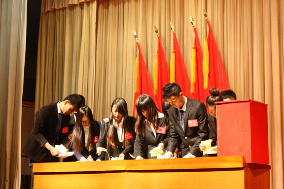 正值全国上下深入学习贯彻党的十八大精神,全面开展党的群众路线教育实践活动的重要时期,扎实推进学习共青团十七大和共青团山东省第13次代表大会精神之际,304am永利集团官网第二十一次学生代表大会于11月30日,在长清校区学术报告厅召开,304am永利集团官网副院长张云龙、工会副主席、妇委会主任黄美玉、学生工作部部长陈军、团委副书记邹晓红出席会议。大会审议并通过了《第二十届学生会工作报告》、《304am永利集团官网学生会章程》(修正案),选举产生第二十一届学生会委员会委员。 大会在庄严的国歌声中开幕,会议第一阶段,由第二十届学生会副主席刘奎明为大会致开幕词,大会工作人员宣读山东省学联发来的贺信。副院长张云龙、工会副主席、妇委会主任黄美玉、团委副书记邹晓红,分别致辞。山东师范大学学生会主席杨依霖代表兄弟院校学生会致贺信。本次学代会,收到来自山东师范大学、山东中医药大学、齐鲁工业大学、山东艺术学院、山东交通学院、山东女子学院等兄弟单位学生会发来的贺信。 张云龙向各级团干部、学生干部致以诚挚的问候,他充分肯定学生会的工作,并代表校党委和行政向同学们提出了4点要求和希望: 一、坚定理想,牢记使命。理想是前进的灯塔,是人生的支柱,是动力的源泉。当代大学生是祖国未来的建设者和接班人,一定要牢记历史使命,自觉地将自己的人生理想与伟大的“中国梦”结合起来,按照习近平总书记在“实现中国梦,青春勇担当”五四主题团日活动座谈会上的讲话要求,坚定理想信念,练就过硬本领,勇于创新创造,矢志艰苦奋斗,锤炼高尚品格,在全面建成小康社会和实现中华民族的伟大复兴中实现自己的人生理想。 二、脚踏实地,自强不息。古人云,“九层之台,起于垒土,千里之行,始于足下。”“天行健,君子以自强不息。”伟大的成就来自点滴的积累,辉煌的荣誉来自艰苦的努力。在成就梦想的道路上,来不得半点敷衍和侥幸。当代社会是一个生机勃勃的社会,也是一个比较浮躁的社会,对此,当代大学生要有清醒的的认识,既要跟上时代的潮流,又要有坚定的自信和理性的判断,不为现象所迷,不被时尚左右,认准目标,脚踏实地,持之以恒,自强不息,不达目的,决不罢休。 三、努力学习,全面发展。学习是成长成材的必由之路。大学生的首要任务是学习,要全面提高自己的思想品格,学习成长成材所需要的各种知识技能。既要努力学习专业知识和专业技能,又要全面学习科学文化知识;既要学习书本知识,又要积极参加社会实践;既要继承前人优秀的文化遗产,又要大胆突破,勇于创新;即要抓住课堂学习这一关键环节,又要积极参加各种课外科技、文化和社会实践活动;既要自尊、自信、自立、自强,管理好自己,发展好自己,又要有强烈的社会责任感,在服务国、服务社会中寻找并走上自己的成功之路。 四、完善自我,服务同学。学生会是全校学生群众组织,是学生自我教育、自我管理、自我服务的组织者和实践者,希望新一届学生会能够继续坚持全心全意为同学服务的宗旨,进一步发挥桥梁纽带作用,积极维护学生的合法权益,积极与学校有关部门沟通协商,切实解决同学们遇到的实际问题,为同学们排忧解难,为学校的发展建言献策,贡献力量。 黄美玉代表工会向大会致辞,并对学生会提出要求:树立理想、坚定信念,树立坚定的人生目标和奋斗方向,加倍努力,奋发成材,不断充实和提高自己,与时俱进,开拓创新,脚踏实地,艰苦创业。 邹晓红代表团委向大会致辞,向前来参加大会的领导、兄弟院校的代表以及来宾表示衷心的感谢,希望各代表坚定信念,立志成才,学生会继续健全工作机制,要围绕中心,服务大局,全体成员要团结引领团员青年,更好的为同学服务。 休会期间,参会领导、老师和学生代表合影留念。随后,第二十届校学生会主席蔡淦做第二十届学生会工作报告,大会筹委会委员张保森向全体与会人员宣读倡议书。 会议第二阶段为各代表团分组学习讨论,学习讨论学校、省学联领导的讲话,并讨论工作报告、倡议书,收集各学生代表提案。 会议第三阶段,会议通过了蔡淦同学关于《第二十届学生会工作报告》、《304am永利集团官网学生会章程》(修正案)、《放飞心中梦想•汇聚青春力量》倡议书的决议并公布了选举办法、监票团名单。之后,第二十一次学生代表大会委员候选人依次上台竞选,在总监票人及监票人的监督下,大会进行无记名投票,选举产生了第二十一届学生委员会委员:于洋,王天军,齐诚诚,孙吉轩,孙鑫,李基正,邵选政,张兴龙,张保森,张悦,赵艺栋,赵柯,荆可文,唐帅,徐英淦,潘文皓。最后,由新当选的学生委员会委员潘文皓发言,第二十届学生会副主席曲鑫涛致闭幕词,至此,304am永利集团官网第二十一届学生代表大会胜利落幕。 各二级学院团总支书记(副书记)、团委工作人员、232名学生代表参加会议。