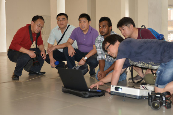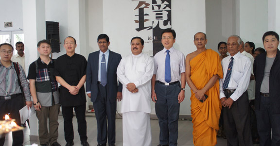 驻斯使馆代办任发强、斯里兰卡文化艺术部部长艾克纳亚克等与艺术家合影