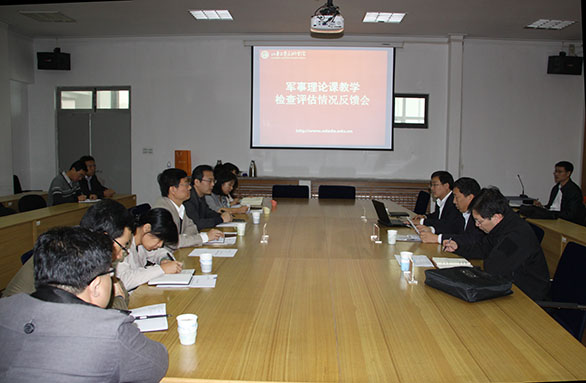 10月21日,以聊城大学人民武装部部长高心沛为组长的山东省高等学校军事理论课教学检查评估专家组来永利官网检查。副院长张云龙会见了专家组一行。 会上,张云龙代表全校师生对专家组的到来表示热烈欢迎,并介绍了学校的基本情况和办学特色。针对军事理论课教学工作,张云龙从组织领导、制度建设、师资力量建设、教学保障等方面向专家组作了详细汇报。他表示,学校高度重视军事理论课教学工作,精心筹划,严密组织,强化保障,此次评估必将进一步推动学校军事理论课工作的深入开展。 专家组通过查阅资料、座谈交流、实地考察等方式,对军事理论课教学工作进行了全面检查。反馈会上,专家组对永利官网军事理论课教学工作给予了充分肯定,检查组组长高心沛认为军事理论课教学工作得到了学校领导的高度重视,组织机构健全,教学管理制度规范,师资队伍结构合理,教学设施配套齐全,教学工作特色明显。专家组还对永利官网今后进一步加强军事理论课教学提出了建设性意见和建议。 在听取专家组的反馈意见后,张云龙表示,学校将认真总结梳理专家组提出的意见和建议,认真研究,尽快加以落实和解决,争取使永利官网的军事理论课教学工作再上新的台阶。 相关部门负责人及工作人员参加了汇报会。