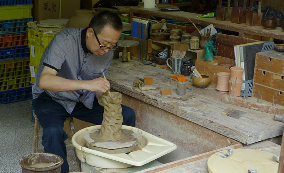 潘鲁生在“华陶窑”进行陶艺创作
