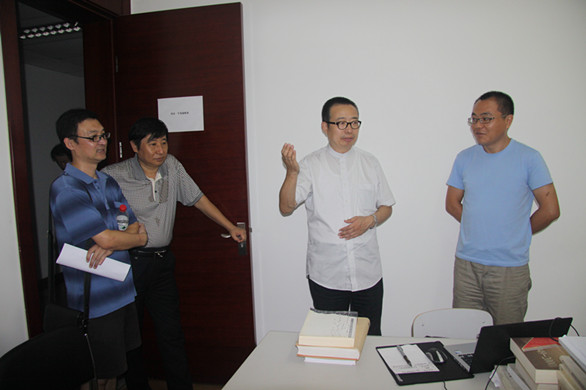 八月夏末,立秋已至。但高温天气一直持续,仍是万瓦鳞鳞若火龙,日车不动汗珠融。 8月7日上午,建校40周年学术活动周工作领导小组组长、院长潘鲁生,在建校40周年学术活动周办公室常务副主任、院长助理王立果,建校40周年学术活动周办公室副主任、院办副主任韩文涛陪同下,顶着高温酷暑,深入走访暑假期间坚守岗位的各单位、各部门,亲切慰问坚守在一线岗位上的建校40周年学术活动周工作者们。 自7月15日暑期放假以来,建校40周年学术活动周各工作组的领导、师生员工们,在滚滚热浪中,依然和平时上班一样,放弃暑假休息时间,坚守在第一线的工作岗位上,无怨无悔、任劳任怨的完成学术活动周的每一项工作。宣传文化组的老师和学生们,有的带病坚持工作,通宵达旦,对宣传片每一帧每一秒一丝不苟的剪辑;校史文献组在酷暑中,求实求真,以严谨认真的态度加快四本书和一个展览的工作进度;教学、学术论坛成果展示组,综合协调,统一部署,在浩如烟海的资料中,对文献进行梳理编辑;校园景观规划改善组严守招标程序,加快工程进度,在高温天气中,对教学楼、宿舍、餐厅等进行全面整修;校园文化建设组奔波在各地市,对优秀校友进行联络,积极筹备各项文化展演活动;接待协调、校友联络组广泛联系校友,成功组织召开校友代表大会和校友代表座谈会,聆听校友心声,传达母校关爱之情。 在走访慰问中,院长潘鲁生对高温期间坚守一线工作的师生们表示感谢和慰问。在走访现场,他认真查看教学、学术论坛成果编辑情况,听取校史文献编辑进度工作汇报,仔细观看部分制作完成的校园文化宣传片,不时和学生们进行互动交流,并在高温中对校园景观规划改造现场进行走访,一一提出改造意见和建议。潘鲁生指出,今年时值建校40周年,各项工作任务重、时间紧迫,大家很辛苦,叮嘱大家注意防暑降温,注意安全,并对走访工作提出要求:第一,文献编辑工作,要把握资料的“取”和“舍”,遵从客观事实,统一基本格式,做好资料的汇编。在校史撰写方面,要广泛听取老领导、老教授、老专家的意见和建议,使校史做到求真求实。第二,宣传片把握主题线,把握镜头语言的概念性和表现力,从观众视角出发,提升宣传片的思想性和高度性。整合宣传片编剧、导演、主演等资源,使学生积极参与创新、积极参与制作。第三,校园文化规划改造上,要做好校园基本设施改造,如校园标语清除、校园电梯安全、校园门窗美化等工作,以新面貌迎接新学期的到来。 建校40周年学术活动周各工作组纷纷表示,将根据下一步工作计划,加倍努力,加快进度,稳中求进,进中求好,好中求优,把各项工作落到实处。