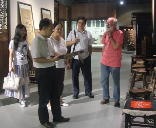 作为永利官网高层次学术带头人引进计划,英国人类学家、原杜伦大学人类学系主任罗伯特•雷顿教授出任304am永利集团官网“文化人类学研究所”所长。该岗位的主要工作方向是文化人类学学科建设、研究生人才培养及“中国传统手工艺传承方式研究”课题研究。 罗伯特•雷顿教授是英国著名文化人类学家,自2005年开始与永利官网中国民艺研究所合作开展中国传统工艺人类学研究,借助人类学理论和方法,重点研究中国民间艺术的发生机制、发展形态和救助机制,探讨民间艺术与文化传承之间的关系。目前双方正在合作的研究项目有“中国传统手工艺传承方式研究”、“山东传统手工艺与公平贸易”等,这些项目为推进中国传统手工艺的艺术人类学研究具有重要作用,目前已取得一定的研究成果。罗伯特•雷顿教授与中国民艺研究所合作开展的“中国传统手工艺传承方式研究”课题,借鉴文化人类学及生物进化论相关研究方法,通过对山东代表性传统手工技艺的传承方式进行跟踪比较研究,分析手工艺的历史渊源及流变,找出传统手工艺的传承与变迁规律,对我国传统手工文化的传承与保护发展具有重要意义。 7月16日,在研究生处处长董占军教授陪同下,罗伯特•雷顿教授与杜伦大学人类学专家杰米•特瑞尼教授参观了学校博物馆与正在美术馆展出的2013届毕业作品展。接下来由文化人类学研究所与中国民艺研究所共同组成的项目研究团队将赴梁山、鄄城、聊城、平度等地开展为期9天的手工艺田野调研。