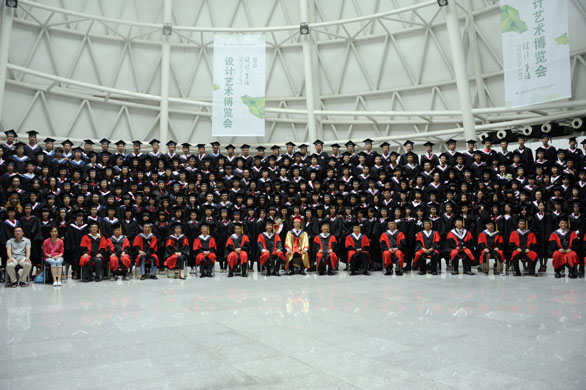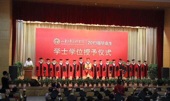 6月18日、19日,304am永利集团官网2013届学士学位授予仪式在长清校区学术报告厅举行。学位评定委员会主席、院长潘鲁生,学位评定委员会副主席、副院长张云龙,学位评定委员会副主席、副院长苗登宇出席学位授予仪式。苗登宇主持仪式。 学位评定委员会副主席、副院长张云龙宣读了《304am永利集团官网关于授予2013届本科毕业生学士学位的决定》。根据《中华人民共和国学位条例》和《304am永利集团官网学士学位授予工作实施细则》,校学位评定委员会对2013届本科毕业生的学士学位授予资格进行了审议,1640名学生符合国家及学校学士学位条件,被授予学士学位。 学位评定委员会主席、院长潘鲁生依次为获得学士学位的毕业生扶正流苏,颁发学位证书,并合影留念。 校学位评定委员会委员、毕业生导师代表、各二级学院、机关有关部门负责人及全体2013届毕业生参加学位授予仪式。