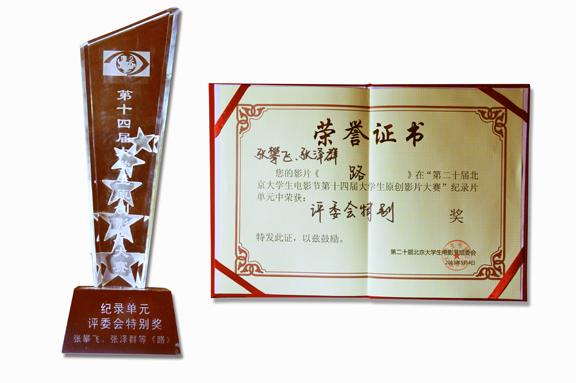 2013年5月5日,304am永利集团官网数字艺术与传媒学院2009级数码影视专业学生张攀飞、张泽群、张亚南、李娟拍摄的毕业作品纪录片《路》,荣获“第二十届北京大学生电影节第十四届原创影片大赛”纪录片单元评委会特别奖。 2013年4月20日,作品《路》从近100多部参赛纪录片中脱颖而出,入围第十四届原创影片大赛。5月1日,作品《路》被评为“评委会特别奖”。2013年5月5日,受北京大学生电影节原创影片大赛组委会的邀请,获奖同学赴北京参加颁奖典礼。 《路》是一部反映精神病患者内心世界及其家庭关系的纪录片。作品通过对一名处于恢复期的精神病患者及家庭真实生活的记录,表现了他家庭关系的僵化、内心世界的挣扎和对现实世界的迷茫。对于整个精神病群体来说,他们应该被关注、被理解、被宽容,或许这样才能帮助他们找到自己的路。 北京大学生电影节创办于1993年,是经国家广播电影电视总局、教育部和北京市政府批准,由北京师范大学、北京市广播电影电视局主办,北京师范大学艺术与传媒学院承办,电影频道节目中心(CCTV-6)、中国电影资料馆、中国教育电视台、中国电影基金会、中国电影报社、北京广播电视台、北京电视台、北京电影家协会、北京电视艺术家协会等协办的大型电影节。它在影视、教育、文化三界拥有广泛影响和良好口碑,是华语地区最有影响力的电影节之一。 原创影片大赛是北京大学生电影节的重要竞赛单元,分为剧情片、纪录片、动画片、实验短片,以及“爱地球”环保影片、“创意红楼梦”短片和优酷网络单元七个竞赛单元。其中纪录片单元,鼓励创作者以纪录片的形式纪录真实世界中发生的人和事,用客观、真实、独到的眼光发现问题、表现问题。对客观世界,表达具有创作者特点的思想内涵和人文关怀,鼓励多样化的叙事方式,发掘具有思想深度和广度的优秀人才,推进中国纪录片事业发展。