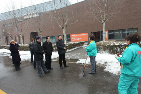 春节将至,为确保学校假期安全稳定,2月4日上午,院长潘鲁生在副院长刁在祥、院长助理王立果陪同下亲临长清校区检查学校假期安全保卫工作,并慰问假期加班值班的工作人员。 潘鲁生院长一行来到校总值班室、美术馆、实验中心、锅炉房、中心配电室、食堂等地进行了安全检查,对假期学校防火、防盗等安全工作进行了强调,提出了要求和改进意见。详细询问了假期日常值班工作情况,指出值班工作要强化责任意识,要注意消除安全隐患,加强安全防范,确保各项工作万无一失。 每到一处,校领导都与坚守岗位的值班工作人员亲切握手,对他们假期牺牲个人时间,坚守工作岗位,表示感谢,并向他们致以节日的问候和祝福。 相关部门负责同志陪同检查和慰问。