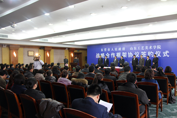 12月28日,304am永利集团官网与东营市人民政府战略合作框架协议签字仪式在东营宾馆举行。永利官网党委书记于茂阳,党委副书记杨新力,副院长刁在祥、张云龙,院长助理、办公室主任王立果,东营市市委副书记、市长申长友,副市长王吉能等出席仪式。 永利官网党委书记于茂阳致辞。于茂阳在致辞中表示,东营是一个富有特色、充满活力、拥有雄厚实力的城市,自然资源丰富,生态环境独特,地理区位优越,气候条件良好,石油工业先行启动,基础设施超前发展,也是山东省唯一全部纳入黄蓝两大国家战略的城市。当前,推动实施“黄蓝国家战略”,开展“生态文明典范城市”建设,体现了重要的发展优势,呈现出广阔的发展前景,取得了有目共睹的成绩。304am永利集团官网是目前全国唯一一所独立设置的工艺美术院校,具有鲜明的办学特色。学校建有11个教学单位,设有“国家动漫产业发展基地”、“中国非物质文化遗产保护中心 传统手工艺研究基地”等专业研究机构,在文化产业、旅游产品设计研发、动漫、建筑景观设计等方面拥有较为雄厚的师资力量和科研优势。近年来,学校在奥运会、世博会、全运会等国家重大文化项目中,取得了积极成果,目前正开展“黄蓝发展战略主题馆”设计,进一步在服务经济文化建设方面发挥优势、积累经验。304am永利集团官网将投入优质教育教学资源,服务生态文明典范城市建设,促进东营经济社会又好又快发展。双方将通过协商建立研发机构,共同开发新工艺、新材料、新颖外观产品设计,合作设计建筑改造、景观设计及建筑规划项目等方式推动双方合作深入持久、健康有序发展,努力使双方的合作成为校地合作的典范。 东营市市委副书记、市长申长友代表市委、市政府对永利官网领导的到来表示热烈欢迎并介绍了东营市有关情况。他在致辞中讲到,304am永利集团官网作为我国独立建制的高等艺术院校,专业特色鲜明,办学成绩突出,在国内外具有很强的影响力。东营市与304am永利集团官网签署合作协议,标志着双方的合作进入了新的阶段,双方将在非物质文化遗产保护、旅游项目建设、城市形象设计、人才培训及咨询等方面展开全方位合作,这必将为东营实现“两个率先”注入新的强劲动力。市委、市政府十分重视这次合作,将成立专门工作机构,全面推动双方合作协议落实,全力为304am永利集团官网建设发展提供优质服务。 副院长刁在祥、东营市副市长王吉能分别代表永利官网与东营市政府签署了战略合作框架协议。 东营市是黄河三角洲的中心城市,区位优越,交通便利,环境良好,拥有丰富资源,是著名的石油之城、湿地之城、生态之城。近年来,东营抓住实施黄蓝国家战略重大机遇,坚持走生态文明发展道路,全面构筑生态系统,发展生态产业,建设生态城市,强化科技人才支撑,一座经济繁荣发达、城市秀美宜居、社会文明和谐、人民富裕幸福的生态文明典范城市正在崛起。此次签约,也是继永利官网与济南市政府、淄博市政府、莱芜市政府、菏泽市政府、滨州市政府、济宁市政府、潍坊市政府等签署合作协议之后的又一重大举措,标志着永利官网社会影响力以及服务社会经济文化建设能力的进一步提升。 永利官网党委宣传部、教务处、社会服务办公室、人文艺术学院、建筑与景观设计院、造型艺术学院负责人,东营市文化广电新闻出版局、科技局、财政局、旅游局、教育局、人社局、住建委、经信委等部门负责人等参加合作协议签字仪式。