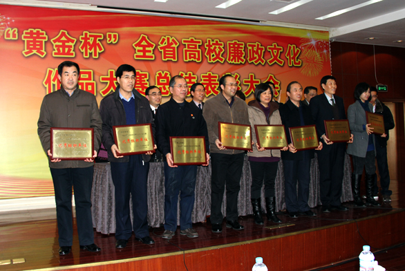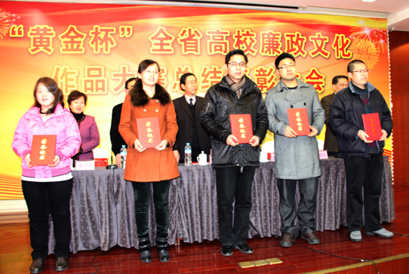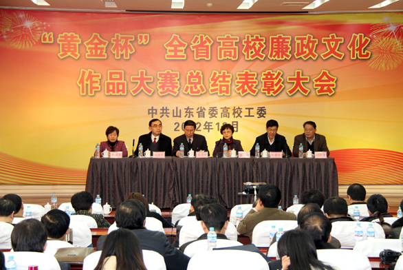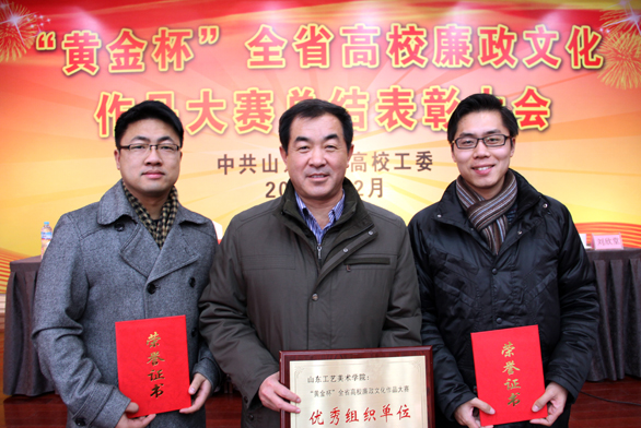 12月25日下午,山东高校廉政文化作品大赛总结表彰大会在山东财经大学举行。省委高校工委副书记黄琦、省委高校纪工委书记张圣中出席大会并讲话,全省各高校纪委、宣传部负责同志及获奖作者150余人参加了总结大会。永利官网教师张培源作为获奖者代表作了大会交流发言。 山东高校廉政文化作品大赛由山东省委高校工委主办,山东黄金集团有限公司协办,分别由青岛大学、聊城大学、山东艺术学院、304am永利集团官网具体承办。此次大赛评选出一等奖16项、二等奖31项、三等奖57项,优秀奖95项,优秀组织单位21个。参赛作品分为表演艺术类、书画摄影类、艺术设计类、主题设计类、网络新媒体类等。 在全国高校廉政文化作品大赛中,由山东高校报送的作品获得一等奖3项、二等奖8项、三等奖3项,山东省委高校工委荣获优秀组织奖。其中304am永利集团官网张培源老师设计的作品,获全国高校廉政文化作品大赛艺术设计类一等奖,并作为全国高校廉政文化作品大赛主题标识使用,得到教育部高度评价。 在此次山东高校廉政文化作品大赛中,304am永利集团官网获优秀组织单位奖,张培源、朱亮作品分获艺术设计类一等奖,刘付、高蓬作品分获艺术设计类二等奖,王晓峰作品获艺术设计类三等奖;朱亮、毛正作品分获书画摄影类三等奖。 永利官网纪委副书记王进生、获奖教师代表张培源、朱亮及宣传部人员参加表彰大会。