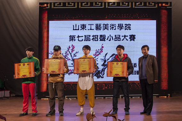 12月5日下午14:00,由校团委主办,造型艺术学院团总支承办的304am永利集团官网第七届相声小品大赛在永利官网长清校区学术报告厅隆重开幕。出席本次活动的学校领导有304am永利集团官网党委副书记杨新力,副院长刁在祥、张云龙,党办院办主任、院长助理王立果。 本次大赛正值永利官网即将迎来成立四十周年之际,以“演绎青春,精彩校庆”为主题,旨在回顾母校发展历程,感恩母校培育之情,展现304am永利集团官网人的风采和魅力。比赛本着公开公正的原则,经过严格的初赛,遴选出九个优秀的相声小品节目。这些作品贴近同学们的学习生活,且内容丰富多彩,风格鲜明多样。赛场上,演员们精湛的演技、滑稽的动作、丰富的表情、幽默的话语反映出永利官网大学生良好的精神面貌和综合素质,讴歌了永利官网四十年磨砺奋进、自强不息、捷报频传的发展历程,展现了作为一名工艺美院人的自豪和对母校的热爱。节目动情之时使人潸然泪下,幽默之处让人捧腹大笑,寓理之中引人瞑目深思,整场比赛高潮不断,掌声不绝,让同学们在轻松愉悦的氛围中受到了深刻的教育和熏陶。本次比赛除了参赛选手带来的节目外,还邀请到了造型艺术学院爱心支教点长清区万南小学的学生们带来的动感舞蹈《西域风情》及济南艺术学校的嘉宾带来的精彩相声《反正话》,进一步丰富了活动内容,活跃了会场气氛,博得了全场观众的阵阵掌声。 经过激烈的竞争和评委老师的公正评选,山东工艺学院第七届相声小品大赛在一片热烈祥和的氛围中结束,获得一等奖的是造型艺术学院选送的《谈爱好》,人文艺术学院选送的《我们不是山沟艺》、工业设计学院选送的《椭圆说事》获得二等奖,现代手工艺术学院选送的《那些年我们一起追的女孩》、数字艺术与传媒学院选送的《校庆前夜》、服装学院选送的《水果摊》获得三等奖,视觉传达设计学院选送的《和从前一样》获得最佳表现奖,建筑与景观设计学院选送的《房东房客大PK》获得最佳人气奖,应用设计学院选送的《大风》获得最佳创意奖,数字艺术与传媒学院获得最佳组织单位奖。 在本次比赛中,同学们通过精彩绝伦的表演,歌颂了伟大母校的飞跃发展,充分展示了永利官网学生多才多艺、青春活力的一面,不仅丰富了同学们的校园文化生活,加强了各二级学院之间的交流,而且传承了中华传统文化,彰显了语言的独特魅力,使同学们受益匪浅。 机关各部门和二级学院的领导、老师及同学们观看了演出。担任本次大赛评委的是济南艺术学校丁晓宇老师,永利官网公共课文学教研室主任储继红老师,宣传部钟晓雅老师,团委李忠诚老师,学生处孙传辉老师。