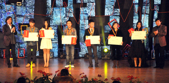 歌声飞扬,梦想激荡。11月26日晚,由304am永利集团官网团委主办,校学生会承办的第九届“火焰杯”校园十佳歌手大赛于长清校区学术报告厅隆重举行。出席本次活动的学校领导有304am永利集团官网党委书记于茂阳,院长潘鲁生,党委副书记杨新力,副院长张云龙、苗登宇,院长助理、党办院办主任王立果。 “火焰杯”作为学校的品牌活动之一,自筹备以来受到学校师生的广泛重视,也是同学们广泛关注的焦点,此次“火焰杯”校园十佳歌手大赛作为庆祝十八大胜利召开,迎接304am永利集团官网四十周年校庆举办,意义重大,经过初赛、复赛的层层选拔,二百多名选手最终有十名选手脱颖而出进入总决赛。为了能够让广大同学欣赏到精彩的比赛,校学生会首次举办人人网抢票活动,同学们在人人网按规定留言,便有机会获得大赛的门票。今年火焰杯在微博、人人网互动方面较为活跃,点击近6000次,在比赛规则、打分环节也有新的突破与创新,在第二轮的淘汰赛中由选手抽签决定分组PK,带给同学们耳目一新的感受。 本次比赛分为淘汰赛、PK赛、冠亚季军争夺赛三个环节。伴随激情动感的开场舞,6:30比赛顺利拉开帷幕,十佳歌手们在第一环节的歌曲联唱中使出浑身解数,无论是《MY LOVE》、《你那么爱他》的深情款款亦或《红日》、《海阔天空》的激情动感,纷纷展示出非凡实力。经过评委举牌与微博投票,包括人气复活选手共有6名晋级下轮PK赛。第八届十佳歌手共同演绎串场歌曲后,选手抽签选择歌曲与PK对象,进入PK赛。PK赛中,王函与景慎贵的PK歌曲《小情歌》别具风情,彭木与马抒博两人合作无间,配合着音乐节拍展现《如果没有你》的深情与活力,第三组李法才高亢粗犷的歌声与许佳恩、许佳蒙组合清脆细腻的歌喉形成了鲜明对比,将歌曲《夜夜夜夜》演绎的淋漓尽致。PK结束场上高潮迭起,台下掌声不断,微博屏幕也不时滚动场外同学对选手的祝福。 最终王函,彭木,许佳恩、许佳蒙组合凭借更为精彩的表现顺利进入冠亚季军争夺赛。第三轮比赛中王函呈现了深沉动人的《痴心绝对》,将本次比赛气氛带入一轮小高潮;彭木用他富有特征的音韵演唱了一曲《你把我灌醉》,磁性十足的声音展示了其扎实的唱功技巧,博得了满堂喝彩;许佳恩、许佳蒙组合带来歌曲《发呆》展现了良好的姐妹默契,台下观众皆陶醉在两人美妙的歌声中,参赛选手们尽情的展示自己,那优美动听的歌声充分传达了自己的心声。经过评委紧张公平的评分后,冠亚季军脱颖而出,彭木(工业设计学院),许佳恩、许佳蒙组合(视觉传达设计学院),王函(现代手工艺术学院)分别获得冠亚季军,另外,最佳人气奖由李法才获得,其他6位选手分别获得十佳歌手称号。至此,第九届“火焰杯”校园十佳歌手大赛圆满落幕。 本次校园十佳歌手大赛决赛的成功举办,为同学们提供了展现自我才能的舞台,营造了浓厚的艺术氛围。在同学们展现自我的同时,丰富了校园文化,提高了工艺美院艺术文化修养,激发广大师生的爱校和热爱艺术的激情,推动校园精神文明建设。