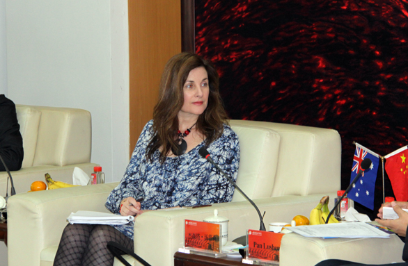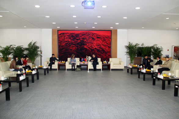 潘鲁生院长与文化部对外文化联络局美大处副处长徐彤、南澳州驻华代表处首席副代表贾小林、山东省文化厅外事处处长文善常交流