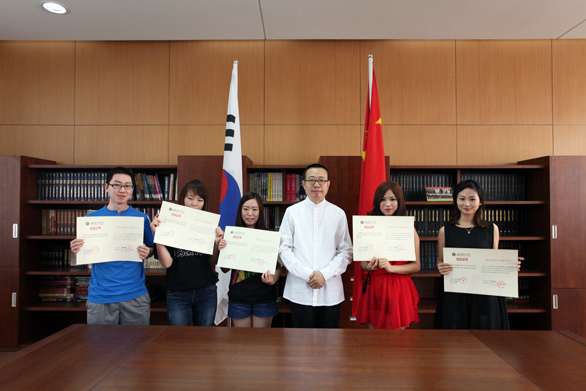 7月3日上午,院长潘鲁生在永利官网长清校区贵宾接待室接见在永利官网访学的韩国大庆大学学生,并为他们颁发结业证书。 潘鲁生院长亲切询问了韩国访学生在永利官网期间的学习及生活情况,对他们通过自身刻苦努力,圆满完成学业表示祝贺。潘鲁生院长强调,中国与韩国的传统文化在许多方面有相似之处,通过对汉语的学习,可以了解中国悠久的文化和历史,也能够促进中韩文化的交流。潘鲁生院长希望访学生回国后要坚持对汉语的学习和使用,有机会继续来中国学习深造,促进中韩文化交流。潘鲁生院长还请访学生转达对韩国大庆大学及校长的祝福。 韩国大庆大学访学生依次用汉语做了自我介绍,畅谈了在永利官网学习期间的心得体会,表达了对汉语和中国文化的浓厚兴趣,并对在永利官网生活学习期间受到的关心和照顾表示感谢。 韩国大庆大学6名访学生自2012年3月来永利官网学习汉语,在永利官网公共棵教学部老师的悉心教育和指导下,通过自身努力,克服了困难,于2012年6月完成了学业。潘鲁生院长为访学生颁发了结业证书。 国际交流与合作处处长康健,公共课教学部主任徐思民等陪同接见。