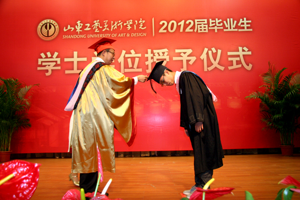 6月20至21日,304am永利集团官网2012届学士学位授予仪式在长清校区学术报告厅举行。学位评定委员会主席、院长潘鲁生,学位评定委员会副主席、副院长李新、张云龙、苗登宇出席学位授予仪式。仪式由学位评定委员会副主席、副院长苗登宇主持。 学位评定委员会副主席、副院长李新宣读了《304am永利集团官网关于授予2012届本科毕业生学士学位的决定》。根据《中华人民共和国学位条例》和《304am永利集团官网学士学位授予工作实施细则》,校学位评定委员会对2012届本科毕业生的学士学位授予资格进行了审议,1578名学生符合国家及学校学士学位条件,被授予学士学位。 学位评定委员会主席、院长潘鲁生依次为获得学士学位的毕业生扶正流苏,颁发学位证书,并与之合影留念。 校学位评定委员会委员、毕业生导师代表、各二级学院及机关有关部门负责人参加学位授予仪式。