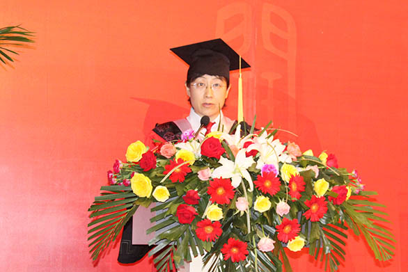 博士发表讲话。他首先代表学校向圆满完成学业的各位研究生表示衷心的祝贺,向付出辛勤努力的全体导师和做出贡献的广大教职工表示感谢。