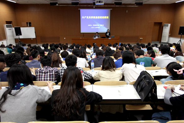 4月25日下午,党委副书记杨新力在长清校区第一阶梯教室为2012年上学期入党积极分子上党课。党课由组织部正处级组织员杨雪梅主持。 党课的主题是《共产党员要做思想道德的模范》。杨新力首先强调了共产党员加强思想道德修养的必要性和迫切性:一、思想道德在国家建设和社会发展方面发挥极其重要的作用;二、共产党员加强思想道德修养既是党的性质的内在要求,也是个人素质提升的必然选择。杨新力指出,共产党员思想道德修养所包含的主要内容是:坚定的理想信念、无私的奉献精神、深厚的爱民之心、健康的生活情趣。 杨新力强调,共产党员和入党积极分子要带头学雷锋,以实际行动践行社会主义核心价值体系:第一,共产党员要做追求社会进步的模范;第二,共产党员要做为人民服务的模范;第三,共产党员要做甘于奉献的模范;第四,党的干部要做艰苦奋斗的模范;第五,共产党员要做学习创新的模范。 关于当前社会大学生的积极入党现象,杨新力表示,大学生的思想道德修养是一个关系到国家和民族发展未来的重要方面。杨新力指出,大学生党员和入党积极分子,要充分发挥好示范带头作用,做新时期思想道德的模范:第一,思想上要先进;第二,学习上列前茅;第三,工作上是榜样;第四;生活上做模范;第五,身心上要健康。 杨新力表示,希望通过此次的党课学习增加与同学们的交流,加深大家相互间的学习机会。希望各位入党积极分子同学们,在日常的学习、工作和生活中,时刻以党员的标准严格要求自己,争做思想道德的模范,争做助人为乐的标兵,时时学雷锋,处处树新风,大家齐心协力,真正把我们的班级、我们的学院、我们的学校建设成为充满生机与活力的集体,成为我们成长成才的乐园! 相关人员和入党积极分子聆听党课。