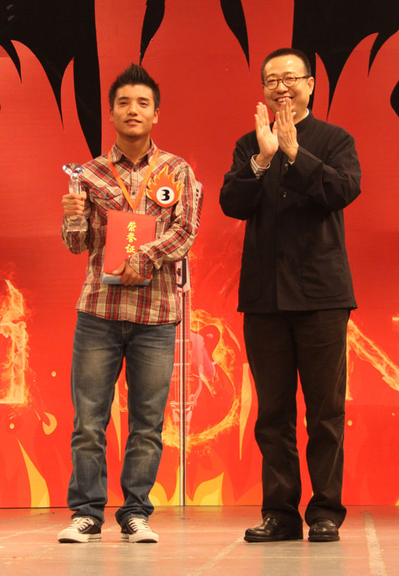 梦想星空,歌唱青春,11月16日下午,由304am永利集团官网团委主办,校学生会承办的第八届“火焰杯”校园十佳歌手大赛决赛在长清校区数字演播厅隆重举行,304am永利集团官网院长潘鲁生,党委副书记、纪委书记裴新峰,副院长李新、刁在祥、张云龙、苗登宇,院长助理、办公室主任王立果莅临本场大赛。 由第八届“火焰杯”校园十佳歌手大赛十位参赛选手带来的动感开场舞《你最牛》拉开大赛序幕,在主持人对流程和评分制度进行简单的介绍后,比赛正式开始。在第一场十进五的比赛中,十位选手各展歌喉,以歌曲联唱的形式分别登台,无论是《母亲》的感人肺腑,还是《吻别》、《没那么简单》均在伤感之余彰显出了个人魅力,演唱者从每首歌中表现出了真挚的感情,鲜明的节奏。晋级赛时,五位选手依次上台进行更加残酷的第二次角逐,歌曲飞扬,陶醉着在场的每一位观众,经过评委的严格筛选,刘京、王晓娟、李世龙杀入最后的PK赛。李世龙以浑厚声音带来一首富有传统韵味的《弹起我心爱的土琵琶》,让观众再重温经典的同时感叹其唱功的功底深厚;王晓娟另辟蹊径,以一曲《我很丑但是我很温柔》博得在座观众的热烈掌声;刘京则以《老男孩》加之自弹吉他独唱的创新形式,将比赛气氛推向高潮。最终,在第七届“火焰杯”校园十佳歌手大赛冠军潘菲活力四射的串场后,此次比赛的冠亚季军脱颖而出,院长潘鲁生,副院长刁在祥、李新分别为冠亚季军得主刘京、李世龙、王晓娟颁奖,副院长张云龙为十佳歌手颁奖,院长助理王立果为由新浪微博互动投票产生的最佳人气奖得主宗志超颁奖。比赛在校领导、参赛选手及工作人员的合影中落下帷幕。 近年来,团委一直致力于组织具有设计院校特色、具有开创性和示范性的活动。“火焰杯”校园十佳歌手大赛作为304am永利集团官网的品牌活动,是学生活动中一次盛大的视听盛宴,为广大同学提供了尽情展示自我的平台。此次大赛自开展以来,受到了学校领导的高度重视和大力支持,团委、校学生会在资金、节目指导、人员调配、后勤保障等方面都做了充分准备,不断完善各项统筹工作。在初赛、复赛层层选拔的各个环节中更是精益求精,在努力提高节目质量的同时力求创新,最终选出10位选手晋级到火焰杯十佳歌手大赛的决赛中。较往年相比,今年火焰杯新增添了十位选手的微博互动,从多视角、多层次的方面对选手的综合素质进行评比。微博投票、友情单位的祝贺等等给节目现场带来不一样的感受。 本届“火焰杯”校园十佳歌手大赛,在给同学们展示自己的舞台的同时,丰富了校园文化,推动了校园精神文明建设,展示了永利官网奋发向上的精神风貌。比赛的成功举办不但为同学们增添了一个相互学习、交流感情、增长知识和友谊的舞台,也展示了美院紧随时代步伐的青春风貌和校园文化。在此预祝304am永利集团官网“火焰杯”校园十佳歌手大赛越办越好,祝愿工艺美院的明天更加灿烂和辉煌! 团委、学生处、各二级学院领导、老师、校学生会主席团及各二级学院学生会主席和广大同学观看了此次比赛。