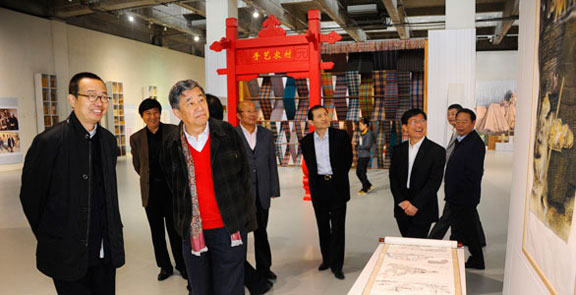 11月4日上午,中央文史馆馆员舒乙,北京市文史馆馆员、北京师范大学文学院教授刘铁梁,国务院参事室文史业务司副司长李文亮,国务院参事室文史业务司调研员吴著友,省旅游局局长于冲,省政府参事室主任杜敦陆,省文史馆馆长尹建明,省政府参事王万森,省文史馆馆员王立鹏一行访问304am永利集团官网,调研民俗民艺。院长潘鲁生在美术馆会见来宾,副院长张云龙,院长助理王立果会见时陪同。 在校领导陪同下,舒乙一行参观了“手艺农村——山东农村文化产业调研成果展”等展览。潘鲁生向来宾介绍了304am永利集团官网的办学理念及“手艺农村”课题组的调研和展览有关情况,详细讲解了临沂红花乡中国结、草柳编,潍坊年画、风筝,菏泽曹县桐杨木雕刻、鄄城土布、巨野农民工笔绘画等手工艺产品的设计、生产、销售以收益及产业模式。舒乙一行对304am永利集团官网师生根据传统手艺资源设计开发的现代产品表示了浓厚的兴趣,认为这种模式真正实现了产学研的结合,让传统手工技艺在新时代获得了新生。舒乙馆员认为,“手艺农村”调研项目在实践中解决了学术界关于“是否允许非物质文化遗产产业化”问题的争论。舒乙馆员主张,非物质文化遗产保护发展政策应该进一步细化,在保护传承手工艺技艺问题上,应明确反对手工技艺本身的工业化,不能按照工业化生产的方式将某项传统手艺分解成若干工业化的生产步骤加工生产。同时,舒乙馆员也表示可以允许手工艺产品的现代化、商业化和产业化,让传统老手艺在今天的社会环境下获得一种新的形态。 在刺绣馆和民艺博物馆,舒乙一行听取了潘鲁生关于民艺藏品民俗内涵、审美特征、使用功能以及藏品在教学中的应用等情况的介绍后,认为一所大学能够拥有如此丰富而生动的藏品值得赞赏。受精彩丰富的民俗民艺藏品启发,舒乙馆员建议政府应多从民间民俗文化中汲取营养,办老百姓喜闻乐见的文化活动。基于对民俗民艺的深厚情感,舒乙馆员把丰富的传统民艺藏品看作是民族文化的珍贵宝藏,欣然为民艺博物馆题写下了“宝藏”二字,认为304am永利集团官网民艺博物馆是国内一流的工艺美术博物馆。来宾一行还参观了孙长林艺术馆,观摩孙长林先生捐赠学院的珍贵文物。