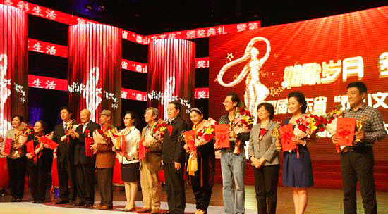 10月12日,第四届山东省“泰山文艺奖”颁奖典礼暨第四届山东国际大众艺术节闭幕式在济南举行。永利官网在本届“泰山文艺奖”中再创佳绩,共获得“荣誉奖”1项,“艺术突出贡献奖”1项,一等奖1项,二等奖1项,三等奖5项。 永利官网《2010年上海世博会山东馆整体展示艺术设计》获“荣誉奖”;著名画家郭志光教授获“艺术突出贡献奖”;张彩翼创作的油画《晨歌》获美术类一等奖;罗云平、于峰、上官星、王楠创作的纪实摄影《生命的敬畏》(组照)获摄影类二等奖;唐家路主创的雕刻《第十一届全运会火炬传递点火仪式圣火台》获民间文艺类三等奖;吴向阳创作的《山东国际大众艺术节会徽》、胡秋霞设计的壁画《人文荟萃景象映辉》、徐莉创作的国画《盛世菊香》获美术类三等奖;数字艺术与传媒学院于明等集体创作的微电影《自画像》获电影类三等奖。 山东省“泰山文艺奖”是山东省委、山东省人民政府批准设立的全省文艺界的综合性政府奖,由省委宣传部、省文化厅、省广电局、省人力资源和社会保障厅、省财政厅、省文联等部门组织评选,到目前已评选了四届。第四届山东省“泰山文艺奖”最终评选出艺术突出贡献奖获得者10名;艺术作品奖共125项,其中荣誉奖1项,一等奖16项,二等奖42项,三等奖66项。这些精品力作和优秀人才的涌现充分反映了目前我省的艺术创作水平。 当晚,中共山东省委常委、宣传部长孙守刚,省政协副主席赵玉兰,中国文联副主席、著名歌唱家吴雁泽,山东省委宣传部副部长刘为民、山东省文联主席潘鲁生,以及省直有关部门负责人,部分知名艺术家及各界群众代表出席了颁奖典礼。中国文联领导和省领导为第四届“泰山文艺奖”获得者颁发了奖杯和证书。当晚还上演了精彩的文艺演出,在嘹亮的歌声中,由山东省委宣传部和山东省文联主办的第四届山东国际大众艺术节也圆满落幕。